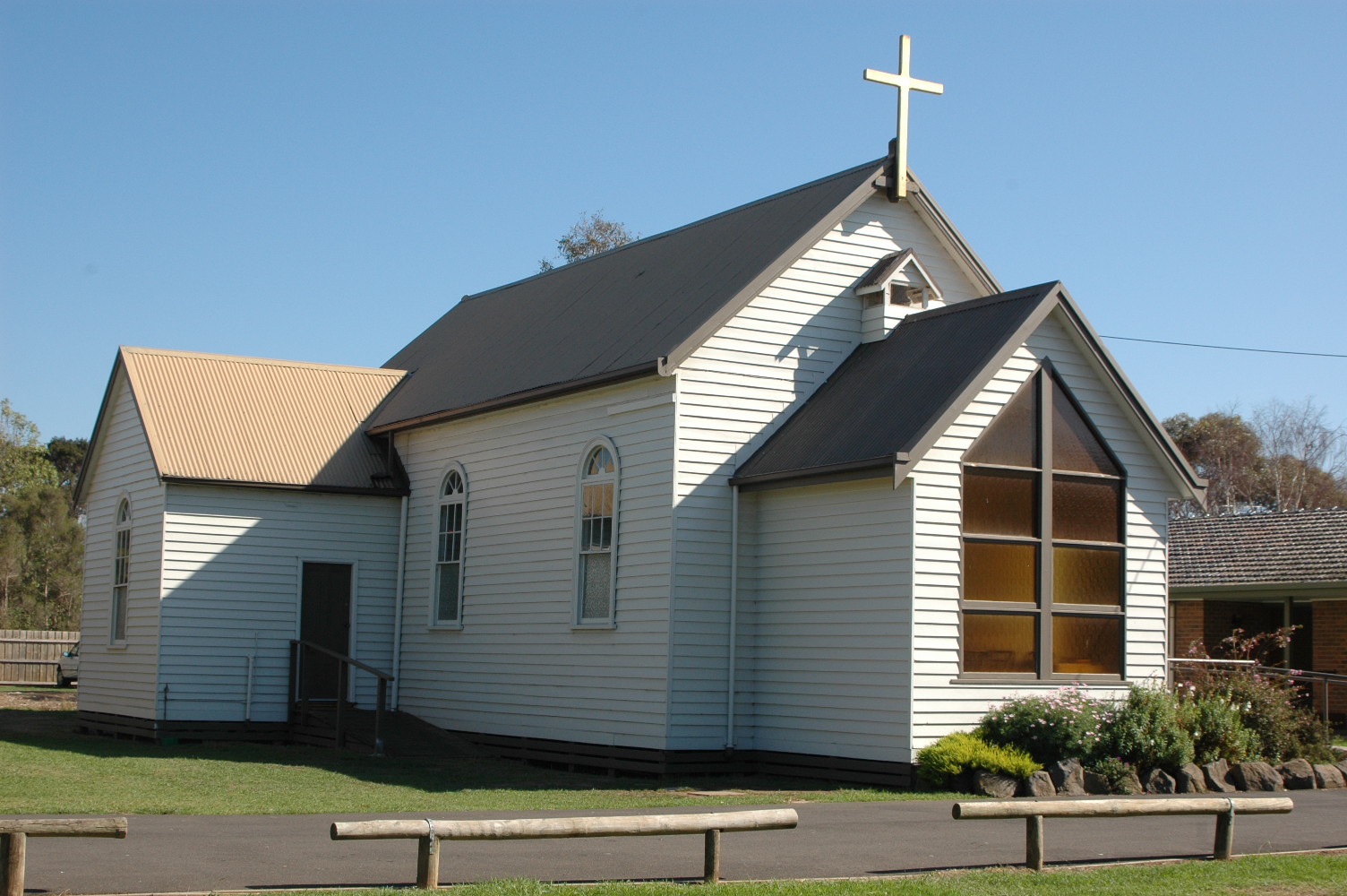 St. Paul’s Church began as a small wooden structure built in Bass in 1878 and was the first church of any denomination in this district; it is the second oldest building in Bass, and Bass is the third oldest permanent settlement in Victoria. In 1887 the first extensions were added – a sanctuary and a small room. By 1955 it had doubled in size to accommodate the growing congregation. In 1958 the Church celebrated its 80th anniversary. In 1967 the wooden building was brick veneered and extended yet again – the veranda being added. The original wooden building still stands beneath the protective brick veneering. A new church roof, and disabled access to the chancel and an outside toilet are recent additions. St Paul’s continues to conduct a weekly communion service on Sundays at 12.30pm, followed by a ‘bring and share’ lunch, which provides parishioners and visitors alike with nourishment and warm fellowship.