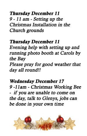 Wednesday 10 December Parish Dinner 6pm in the Hall